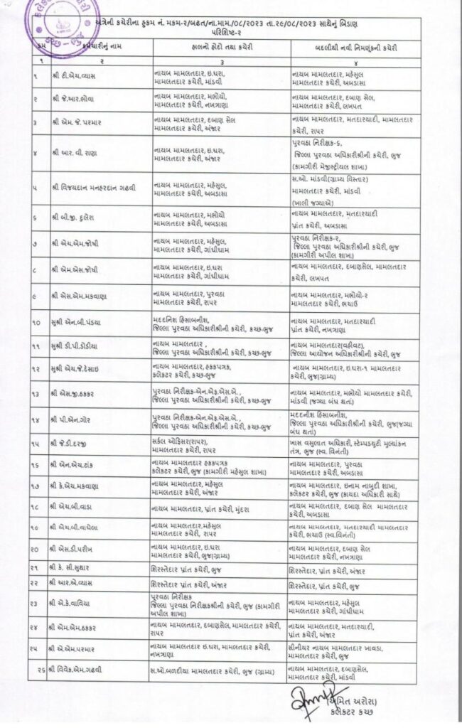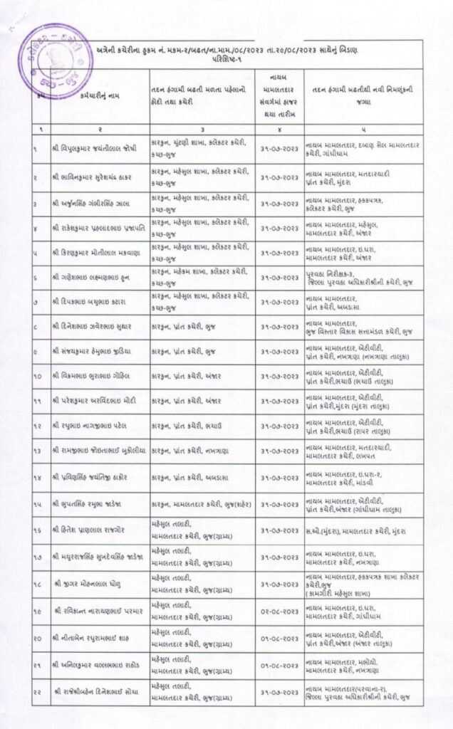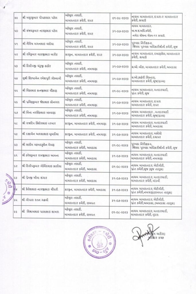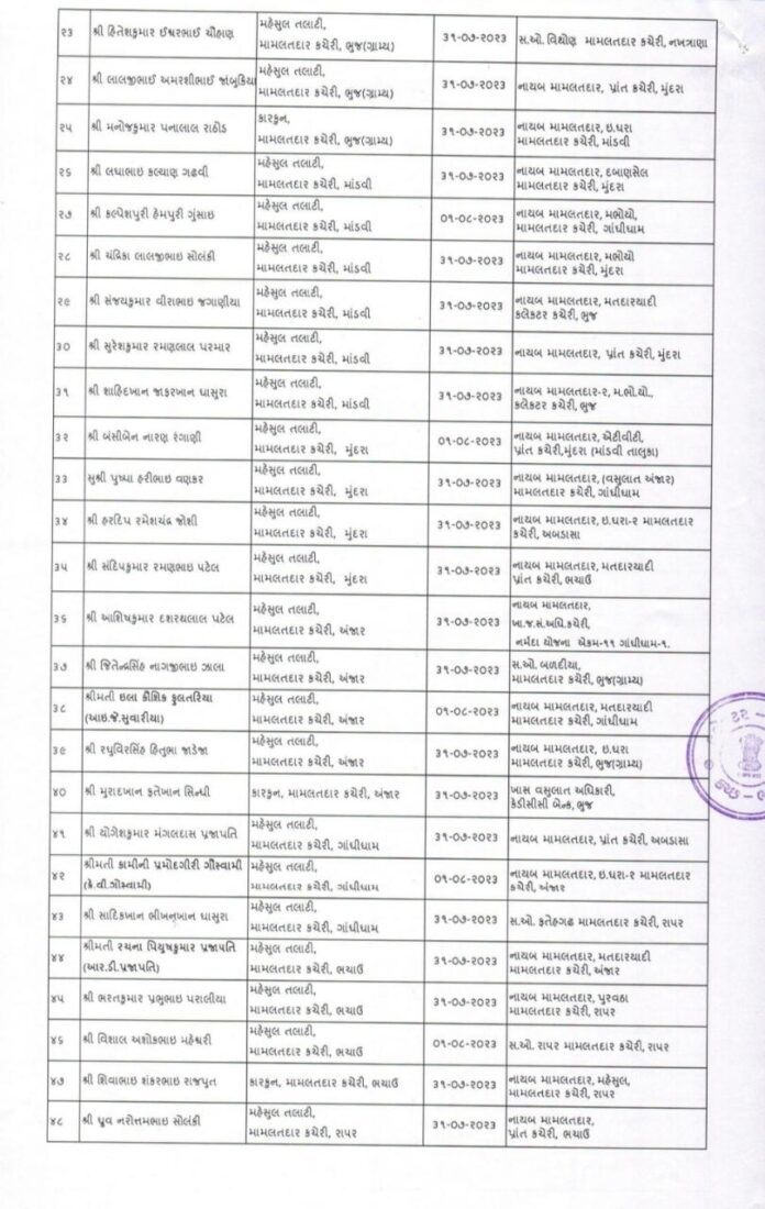 કચ્છના 66 જેટલા મામલતદારની હંગામી ધોરણે બઢતી તથા બદલી કરવામાં આવી.