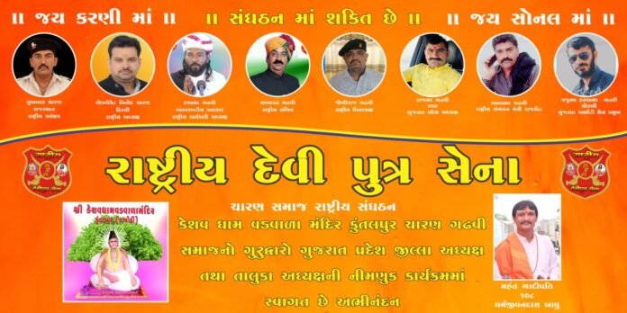 સમસ્ત ચારણ ગઢવી સમાજ નો ગુરુદ્રારો અને અઢારે વરણ ની આસ્થા નું કેન્દ્ર એટલે કુંતલપુર કાંત્રોળી કેશવનાથ બાપુ ની જગ્યા પર આવનારી શ્રી રાષ્ટ્રીય દેવીપુત્ર સેના દ્વારા જાહેર ધર્મસભા નું આયોજન પણ કરવામાં આવશે અને રાષ્ટ્રીય દેવીપુત્ર સેના ના રાષ્ટ્રીય આગેવાનો ની ઉપસ્થિતિ માં નવા હોદ્દેદારો ની વરણી કરવામાં આવશે.