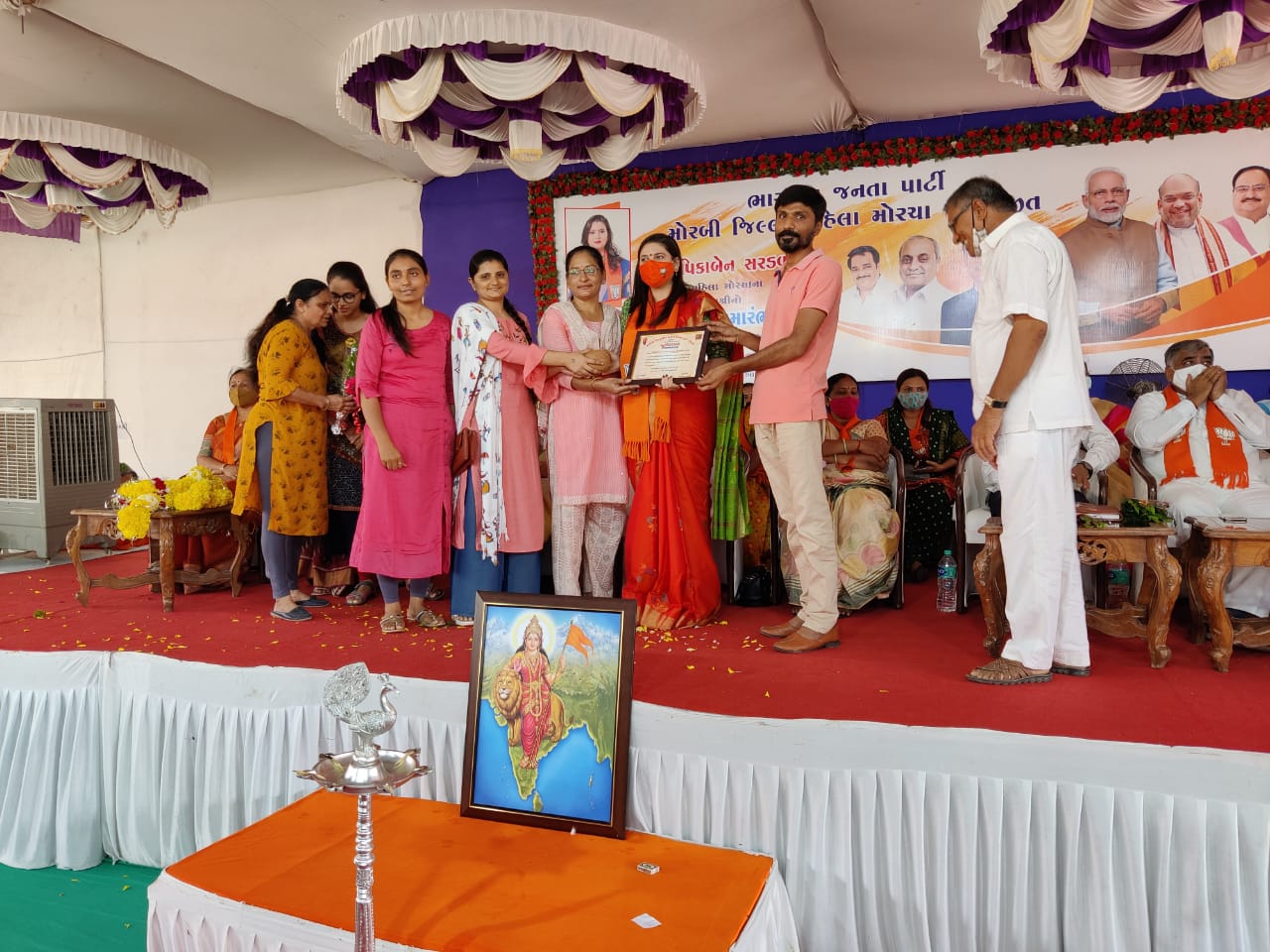 જેમાં મોરબી પાટીદારધામ સંસ્થાના પ્રમુખ સેવક કિરીટભાઈ દેકાવડીયા તેમજ મંત્રી નાનજીભાઈ મોરડીયા તેમજ અન્ય કાર્યકર બહેનો દ્વારા ડો.દીપિકાબેન સરડવા (પ્રદેશ મહિલા મોરચાના અધ્યક્ષ) કે જેઓ મોરબીના જ વતની હોય મોરબી માટે ગૌરવપ્રદ બાબત હોવાથી મોરબી ભાજપ મહિલા. મોરચા દ્વારા આયોજિત અભિવાદન સમારંભમાં પાટીદાર ધામ મોરબી દ્વાર સન્માન પત્ર અને શ્રીફળ આપી સન્માન કરવામાં આવેલ હતું.