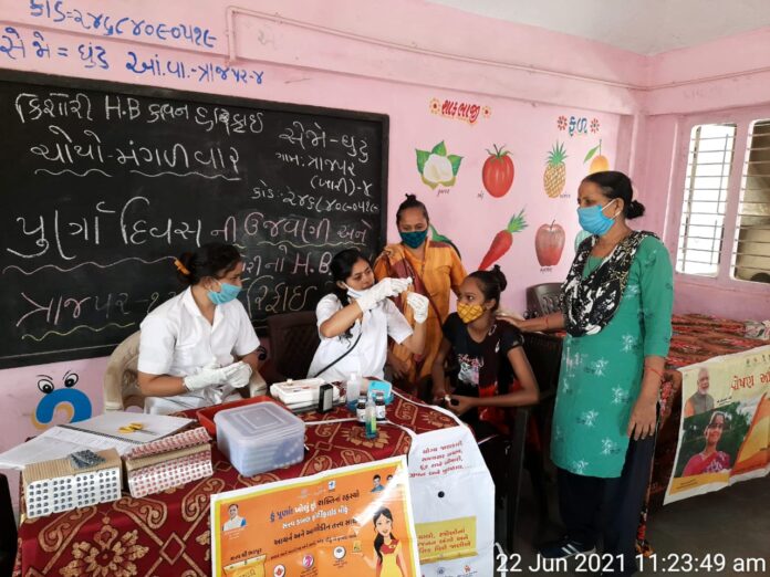 ત્રાજપર ગામે આંગણવાડી કેન્દ્ર ખાતે કિશોરીઓનું હિમોગ્લોબીન ક્વિન હરિફાઈ યોજાઇ