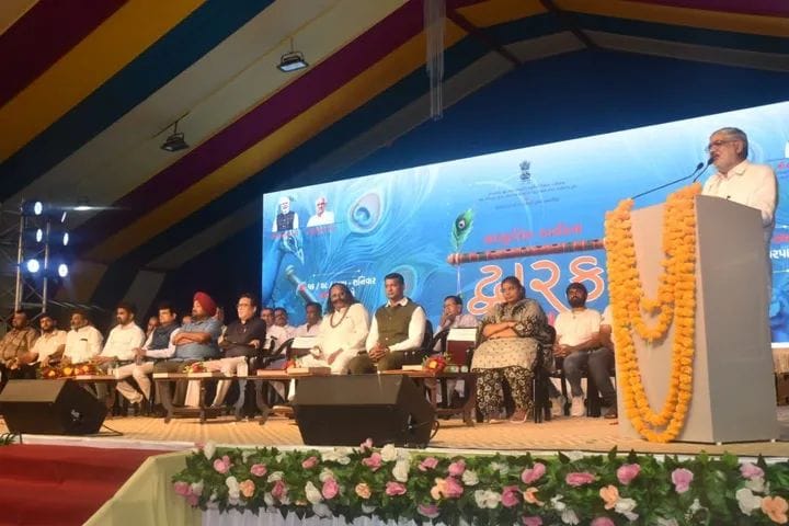 જન્માષ્ટમી પર્વની પાવન સંધ્યાએ દ્વારકા ખાતે ગુજરાત સરકારના રમત-ગમત યુવા અને સાંસ્કૃતિક પ્રવૃત્તિઓ વિભાગ તથા કમિશનરશ્રી, યુવક સેવા અને સાંસ્કૃતિક પ્રવૃત્તિઓ અને દેવભૂમિ દ્વારકા જિલ્લા વહીવટી તંત્રના સંયુક્ત ઉપક્રમે ભવ્ય “દ્વારકા ઉત્સવ-૨૦૨૫” રાજ્યના પ્રવાસન મંત્રી શ્રી મૂળુભાઈ બેરાની અધ્યક્ષસ્થાને યોજાયો હતો.