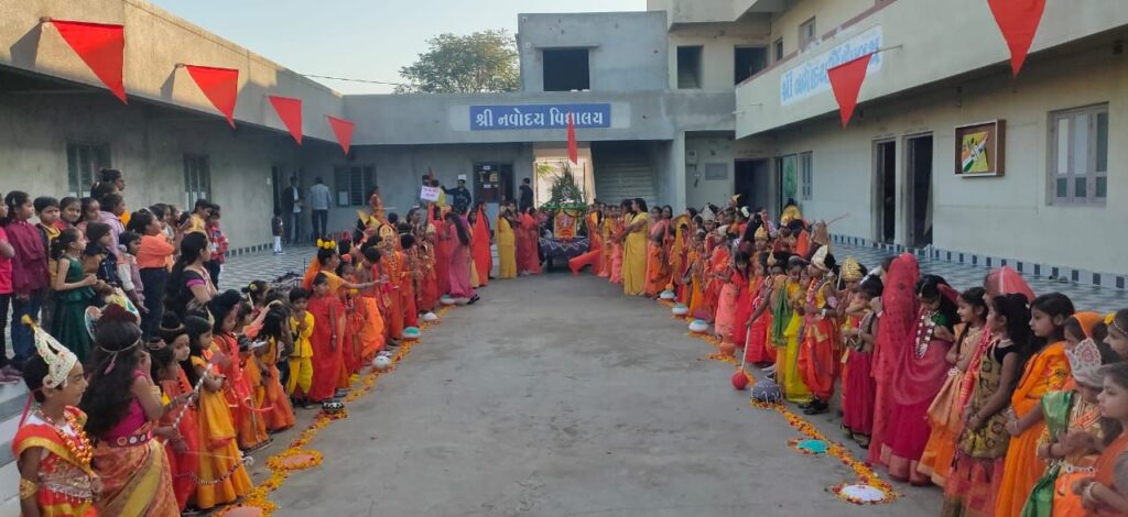 શ્રી નવોદય વિદ્યાલય- ઘુટું ખાતે આજરોજ તારીખ 13/01/ 2024 ને શનિવારના રોજ સવારે 9:00 વાગ્યાથી 11:30 વાગ્યા સુધી અયોધ્યા થી આવેલ અક્ષત કળશ નું સ્વાગત કરવામાં આવ્યું ત્યારબાદ શાળાએથી શરૂ કરી આખા ગામમાં ભવ્ય શોભા યાત્રાનું આયોજન કરવામાં આવેલ હતું જેમાં શાળાના સૌ વિદ્યાર્થીઓ, શાળાના ભૂતપૂર્વ વિદ્યાર્થીઓ , બહોડી સંખ્યામાં વાલીશ્રીઓ તથા ગ્રામજનોએ ખૂબ ઉત્સાહભેર ભાગ લીધેલ હતો.