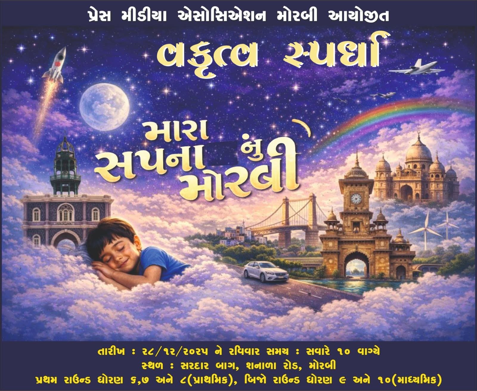 પ્રેસ મીડિયા એસોસિએશન મોરબી દ્વારા “મારા સપનાનું મોરબી” વકૃત્વ સ્પર્ધાનું આયોજન