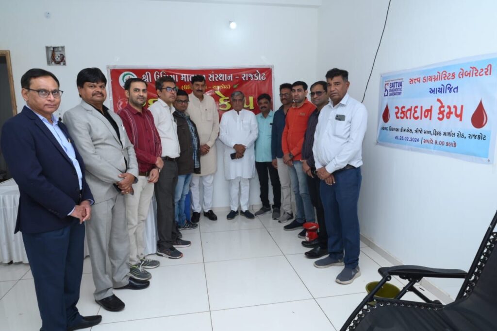 રાજકોટ ખાતે એક હજાર જેટલા લોકોની ઉપસ્થિતમાં રક્તદાન કેમ્પ સાથે મોહનભાઈ કુંડારિયા,દુર્લભજીભાઈ દેથરીયા બ્રિજેશ મેરજાની પ્રેરક ઉપસ્થિતમાં લેબોરેટરીનું ઉદ્દઘાટન