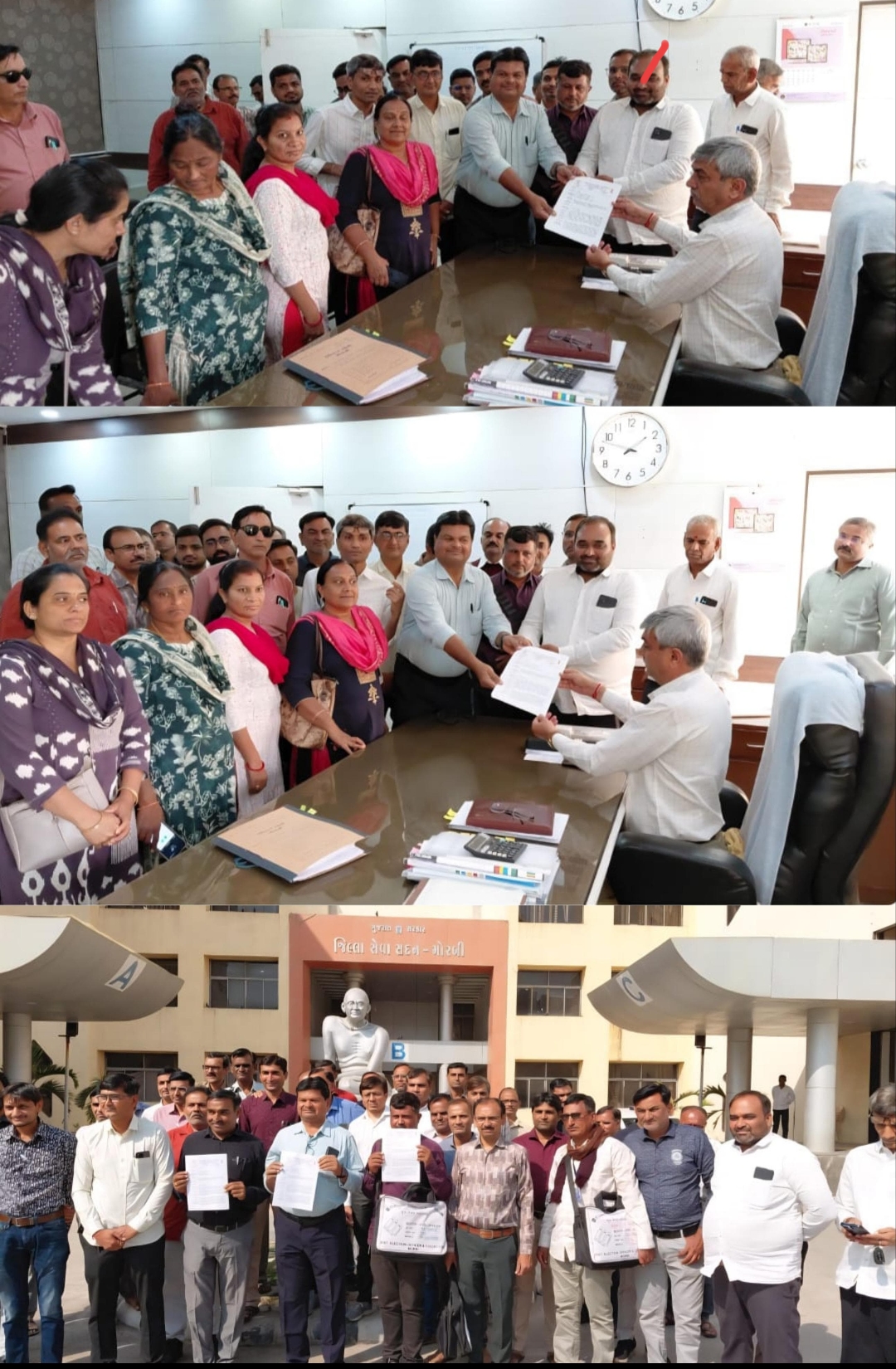 અખિલ ભારતીય રાષ્ટ્રીય શૈક્ષિક મહાસંઘ–ગુજરાત રાજ્યની તરફથી આપેલ આહવાન અન્વયે નીચે મુજબના પ્રશ્નો માટે કલેક્ટર તેમજ વિધાનસભા સીટ વાઈઝ પ્રાંત અધિકારીઓને આવેદન આપવા કલેકટર કચેરીએ ઉપસ્થિત રહી બીએલઓના પ્રશ્નો કલેકટર મારફત રાજ્ય ચૂંટણી પંચને પહોંચાડવા ઉપસ્થિત રહ્યા હતા