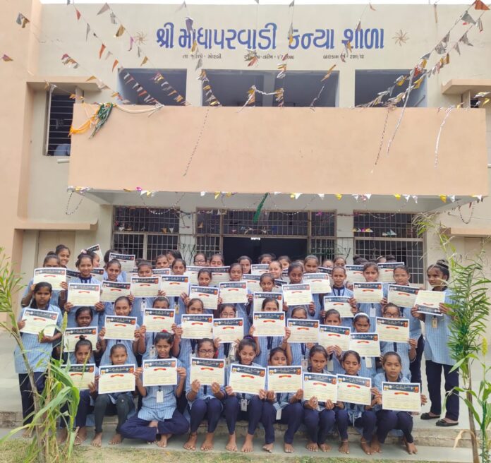 મોરબી,અત્રેની માધાપરવાડી કન્યા શાળામાં વિદ્યાર્થીનીઓના સર્વાંગીણ વિકાસ માટે અનેકવિધ સહ અભ્યાસિક પ્રવૃતિઓ કરાવવામાં આવે છે,વિશિષ્ટ દિવસોની વિશિષ્ટ રીતે ઉજવણી કરાવવામાં આવે છે,બાળકોને શાળાએ આવવું ગમે,રોકાવું ગમે ભણવું ગમે એવી અનેકવિધ પ્રવુતિ કરાવવામાં આવે છે ત્યારે આજે વધુ એક પ્રવૃત્તિ કરાવવામાં આવી જેમાં વિશ્વના મોટા સંગઠન રાષ્ટ્રીય સ્વંયમ સેવક સંઘ દ્વારા ચાલતા વિવિધ ક્ષેત્રો પૈકી ભારત વિકાસ પરિષદ-મોરબી જિલ્લાની શાખા દ્વારા વિદ્યાર્થીઓ માટે ભારત વિકાસ પરિષદ દ્વારા ભારત કો જાનો પરીક્ષાનું આયોજન કરવામાં આવેલ જેમાં માધાપરવાડી કન્યા શાળાની ધો.6 થી 8 ની વિદ્યાર્થીનીઓએ વેદ વ્યસજીના પિતાજીનું નામ શું હતું? ચેટીચાંદ કયા સંતની સ્મૃતિમાં ઉજવાય છે? શ્રીકૃષ્ણના શંખનું નામ શું હતું?ચાણક્યનું મૂળ નામ શું હતું? સ્વરાજ મારો જન્મસિદ્ધ અધિકાર છે એવું કોને કહ્યું હતું? ભારતની કઈ સંસ્થાએ એકીસાથે 104 ઉપગ્રહોનું પ્રક્ષેપણ કર્યું હતું? ભારતનો મુદ્રાલેખ કયો છે? વગેરે જેવા 50 પચાસ પ્રશ્નોના ઉત્તર પેપરમાં લખી પોતાના જ્ઞાનમાં વધારો કર્યો હતો.ભારત વિકાસ પરિષદ તરફથી ભાગ લેનાર તમામને પ્રમાણપત્ર આપવામાં આવ્યા હતા,બીજા તબક્કામાં શાળા કક્ષાની કસોટીમાં પ્રથમ બે નંબર પ્રાપ્ત કરનારને આગળની સ્પર્ધામાં મોકલવામાં આવશે, સમગ્ર પરીક્ષામાં ભારત વિકાસ પરિષદના અધ્યક્ષ ડો.પનારા અને પ્રકલ્પ સંયોજક દિલીપભાઈ પરમારે માર્ગદર્શન પૂરું પાડ્યું હતું શાલકક્ષાએ જયેશભાઈ અગ્રાવત દયાલજીભાઈ બાવરવા, ચાંદનીબેન સાંણજા,નીલમબેન ગોહિલ, હિતેષભાઈ બરસરા વગેરે શિક્ષકોએ ખુબજ જહેમત ઉઠાવી હતી.