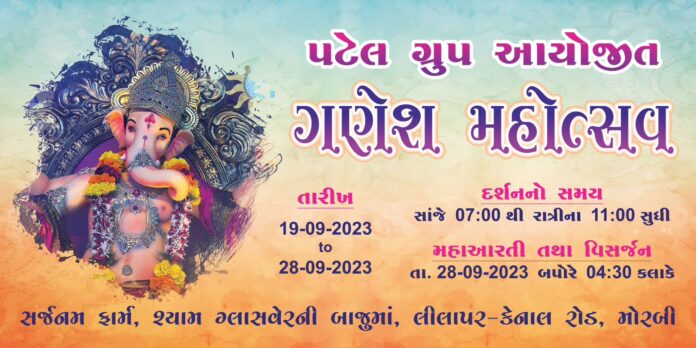 મોરબીમાં પટેલ ગ્રુપ દ્વારા સર્જનમ ફાર્મમાં ગણેશ મહોત્સવની ઉજવણી કરાશે.