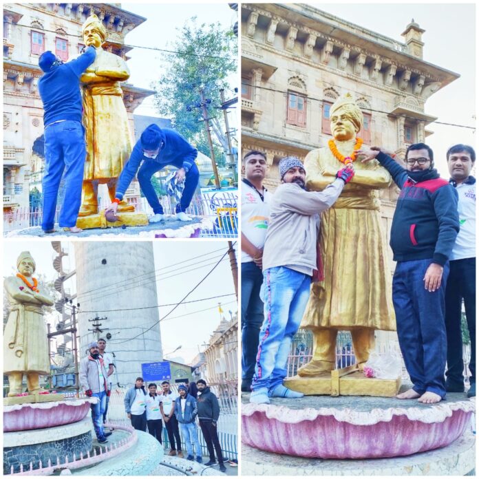 મોરબીના દરબાર ગઢ નજીક સ્થિત સ્વામીજીની પ્રતિમાની સફાઈ કરી વિવેકાનંદની પ્રતિમાને ફૂલહાર કરીને ઉજવણી કરી હતી. અત્રે ઉલ્લેખનીય છે કે, યુવા આર્મી ગ્રુપ દ્વારા મોરબીમાં 24 કલાક રક્તની જરૂરિયાત પુરી પાડવામાં આવે છે. આ સિવાય પણ અનેક સેવાકિય પ્રવૃતિઓ કરવામા આવતી હોય છે. ત્યારે આજે સ્વામી વિવેકાનંદની જન્મ જયંતિની ઉજવણી કરવામાં આવી હતી.