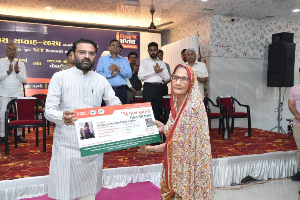 આ પ્રસંગે સાંસદશ્રી વિનોદ ચાવડાએ જણાવ્યું હતું કે, આજે આરોગ્ય, શિક્ષણ, રોજગારી, વીજળી તેમજ ખેતી ક્ષેત્રના વિકાસ સાથે ગામડાઓ ધબકતા થયા છે. તમામ ક્ષેત્રે માળખાકીય સુધારાઓ સાથે વિકાસની ગતિને વેગ મળ્યો છે અને છેલ્લા અઢી દાયકામાં ગુજરાત રાજ્ય તથા ૧૧ વર્ષમાં દેશની કાયાપલટ થઈ છે. આયુષ્માન કાર્ડની યોજના થકી આરોગ્ય ક્ષેત્રે ક્રાંતિકારી પરિણામો મળ્યા છે તેવું તેમણે વધુમાં ઉમેર્યું હતું.