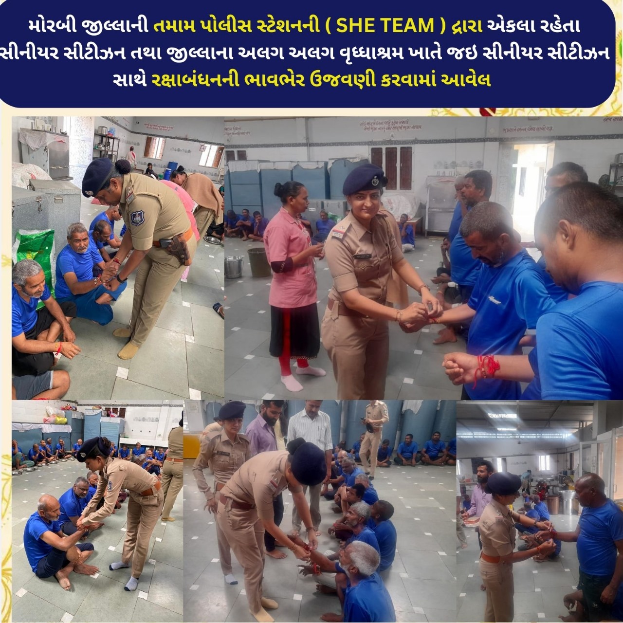 મોરબી જિલ્લા 112 અભયમ ટીમ તેમજ મોરબી મહિલા સીટી સાથે મોરબી મહિલા પોલીસની ટીમે વૃદ્ધાશ્રમમાં રક્ષાબંધનની ઉજવણી કરી.