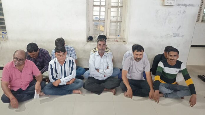 આ અંગે મળતી માહિતી મુજબ મોરબી એલસીબી પોલીસને મળેલી બાતમીના આધારે બાતમી વાળી જગ્યાએ રેઇડ કરતા મોરબીના લાતી પ્લોટ ૧-૨ વચ્ચે રીધ્ધી સિધ્ધી પાન વાળી શેરી વિશાલ સ્ટોર પાછળ ઓફિસમાં તીનપત્તીનો જુગાર રમતા આરોપી પ્રિયદર્શન ઉર્ફે પી.પી. પુર્ણશંકર ઠાકર રહે .મોરબી, ભરતભાઇ તળશીભાઇ સાંદેશા રહે.મોરબી લાતી પ્લોટમાં, અક્ષય મગનભાઇ વિઠ્લાપરા રહે. ડુંગરપુર તા.હળવદ, કાળુભાઇ ગંગારામભાઇ મોરતરીયા રહે.જુનાદેવળીયા તા.હળવદ, કાંતીલાલ માવજીભાઇ શેરરીયા રહે.મોરબી, દિનેશભાઇ વલ્લભભાઇ રહે.મોરબી, રણદીપભાઇ હરજીભાઇ કાવઠીયા રહે.બેલા તા.જી.મોરબી, જયેશભાઇ કેશવજીભાઇ કલોલા રહે.મોરબી, રમજાન ગફુરભાઇ માલાણી રહે. મોરબી, કપીલભાઇ ભગવાનજીભાઇ અધારા રહે.મહેન્દ્રનગર ઉગમણા મોરબી વાળાને રોકડ રકમ રૂ.૨,૯૧,૪૦૦ તથા મોબાઇલ ફોન નંગ-૧૫ કિં રૂ.૮૧,૦૦૦ તથા વાહન નંગ-૩ કિં રૂ.૩,૩૦,૦૦૦ મળી કુલ કિં રૂ.૭,૦૨,૪૦૦ ના મુદ્દામાલ સાથે ઝડપી પાડી આરોપીઓ વિરુદ્ધ મોરબી સીટી એ ડીવીજન પોલીસે સ્ટેશનમાં જુગારધારા કલમ હેઠળ ગુન્હો નોંધી કાયદેસરની કાર્યવાહી હાથ ધરી છે.