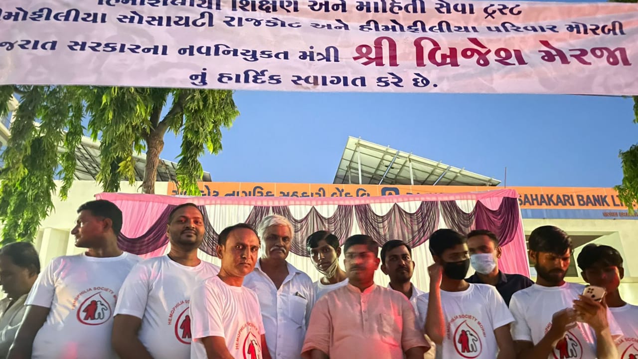 મોરબી હિમોફીલીયા સોસાયટી દ્વારા રાજ્યકક્ષાના મંત્રી બ્રિજેશ મેરજાનું સન્માન કરાયું