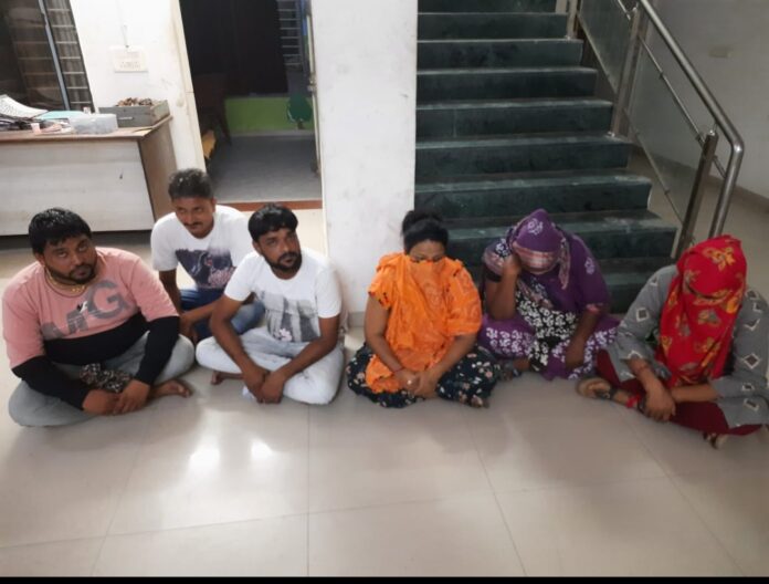 તેવી ચોકકસ બાતમીના આધારે રેઇડ કરતા જુગાર રમતા ૩ મહીલાઓ શબાનાબેન સતારભાઇ ઇબ્રાહીમભાઇ (રહે. રણછોડનગર ગરબી ચોક પાસે મોરબી), ભાવનાબેન સુધીરભાઇ ઠાકર (રહે. લાયન્સનગર વીશીપરા મોરબી),ક્રિષ્નાબેન પ્રફુલભાઇ પરમાર (રહે વાવડી રોડ મિરા પાર્ક મોરબી) તથા ૦૩ ઇસમો રાહુલભાઇ કમલેશભાઇ જોગીયાણી (રહે. રાજકોટ કોઠારીયા મેઇન રોડ સ્વાતી પાર્ક),નિલેશભાઇ મનસુખભાઇ જોગેલા (રહે. રણછોડનગર ગરબી ચોક મોરબી),રાજુભાઇ ઉર્ફે રાજીયો ખીમજીભાઇ પરમાર (રહે. રેલ્વે સ્ટેશન પાછળ કબીર આશ્રમ પાસે મોરબી) નેં રોકડ રૂ. ૨૭,૧૦૦/- ના મુદામાલ સાથે પકડી પાડેલ છે.