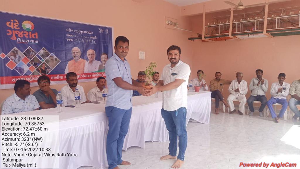 છેલ્લા બે દાયકામાં ગુજરાતમાં થયેલ વિકાસની સોડમ જન જન સુધી પ્રસરાવવા આજરોજ માળીયા તાલુકાના સુલતાનપુર ગામ ખાતે થી માળીયા તાલુકામાં “વંદે ગુજરાત વિકાસ યાત્રા રથ” ને પ્રસ્થાન કરાવી ગામના જનજન ને વિકાસયાત્રામાં જોડ્યા અને વંદે ગુજરાત વિકાસ યાત્રા રથનું સ્વાગત કરવામાં આવ્યું અને વિકાસ રથ”ને પ્રજાજનો દ્વારા ઉમેળકાભેર આવકારવામાં આવ્યો.