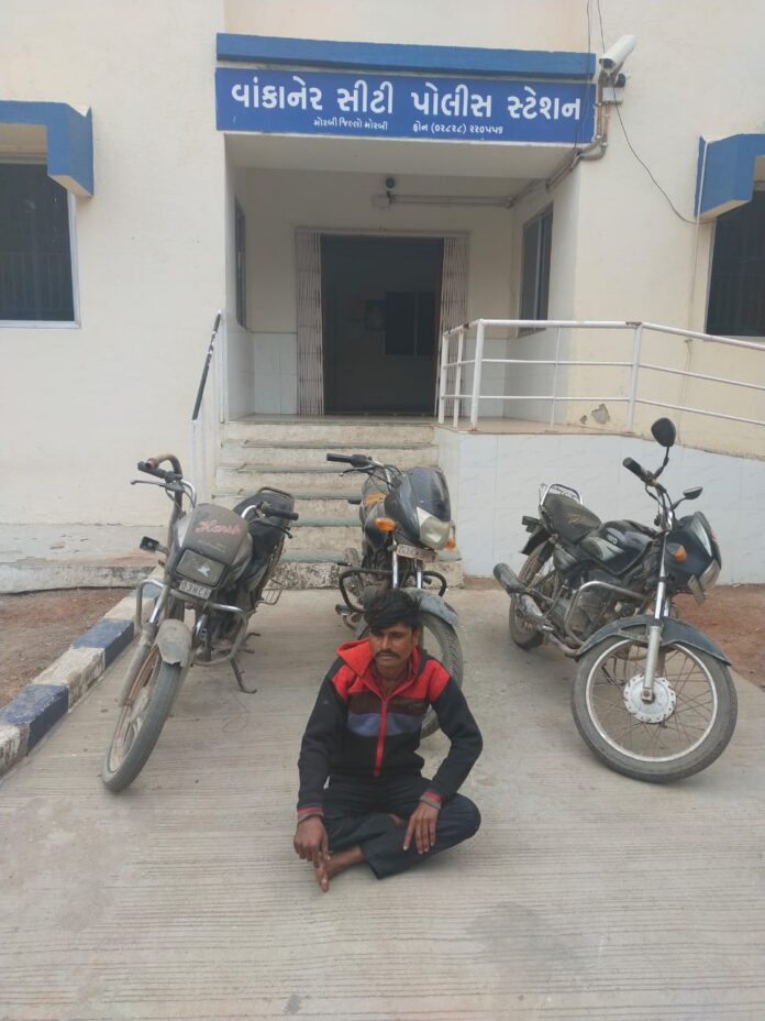 વાંકાનેર સીટી પોલીસ ટીમે થાન ચોકડી પાસેથી ચોરીના બાઈક સાથે આરોપીને ઝડપી લીધો હતો અને વાંકાનેર સીટી પોલીસ મથકમાંથી ચોરી થયેલ બાઈક ઉપરાંત અન્ય બે બાઈક રીકવર કરવામાં આવ્યા છે