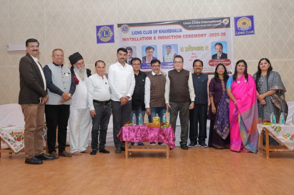 ખંભાળિયામાં લાયન્સ ક્લબના આગામી વર્ષ 2025 26 હોદ્દેદારોનો ટાઉનહોલ ખાતે પદગ્રહણ સમારોહ યોજાયો હતો જેમાં પ્રમુખ તરીકે ખંભાળિયાના યુવા અગ્રણી અને પત્રકાર પરબતભાઈ ગઢવી,સેક્રેટરી ડૉ.સાગર ભૂત ટ્રેઝરર તરીકે અમિતભાઈ બુધભટ્ટી સહિત ટીમે પદગ્રહણ લાયન્સ ક્લબ પૂર્વ ગવર્નર ધીરેનભાઈ બદીયાણીના વરદ હસ્તે કરવામાં આવ્યું હતું આ પ્રસંગે મુખ્ય મહેમાન તરીકે કલેકટર આર.એમ તન્ના, ખંભાળિયા પાલિકાના પ્રમુખ રચનાબેન મોટાણી, પૂજ્ય ગિરીશ આપા, રિજિયન ચેરપર્સન જગત રાવલ, ઝોન ચેર પર્સન ધ્રુવીબેન સોમપુરા, સેકન્ડ વાઇસ ડિસ્ટ્રિક્ટ ગવર્નર નીરવ વાડોદરિયા, શૈલેષભાઈ ગઢવી, ચૈતાલી બેન સહિત અગ્રણીઓ ખાસ ઉપસ્થિત રહ્યા હતા આ કાર્યકમ તત્કાલીન પ્રમુખ ડૉ સાગર ભૂત, લાયન પરેશ મહેતા,નિમિષા નકુમ, દીપક ચોકસી, દિનેશ પોપટ, યોગેશ મોટાણી, હાડાભા જામ, ડો રણમલ વાળોતરીયા, ડૉ અમિત નકુમ,દિવ્યેશ મોદી,ઘનશ્યામસિંહ જાડેજા, વિનુભાઈ બરછા, વીરાભાઇ ભાદરકા, પંકજભાઈ પંડ્યા, ડોક્ટર શાલીન પટેલ,જેમિનીબેન મોટાણી,નીતાબેન બદીયાણી, દર્શનાબેન મહેતા,જાનકીબેન ભૂત, નીપાબેન બુધભટ્ટી સહિત લાયન્સ ક્લબના અગ્રણીઓ અને શહેરના આગેવાનને ઉપસ્થિતિમાં યોજાયો હતો આ તકે આગામી વર્ષના નવા હોદ્દેદારો સફથ ગ્રહણ કર્યું હતું કાર્યક્રમનું સુંદર સંચાલન દિનેશ પોપટ દ્વારા કરવામાં આવેલ હતું