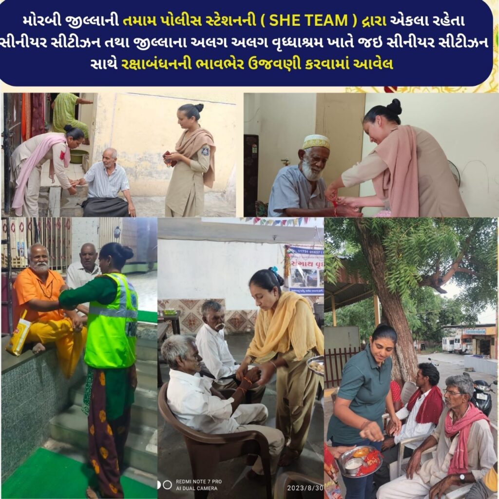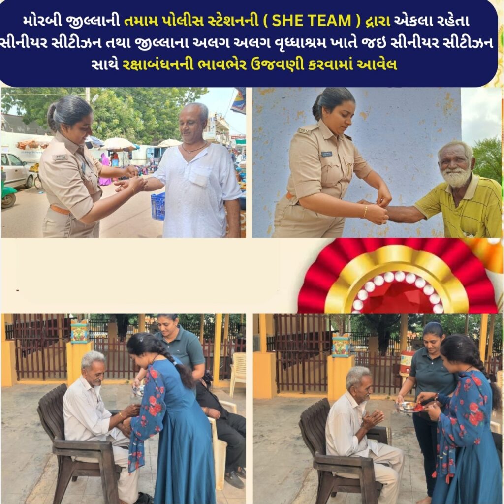 મોરબી જિલ્લા 112 અભયમ ટીમ તેમજ મોરબી મહિલા સીટી સાથે મોરબી મહિલા પોલીસની ટીમે વૃદ્ધાશ્રમમાં રક્ષાબંધનની ઉજવણી કરી.