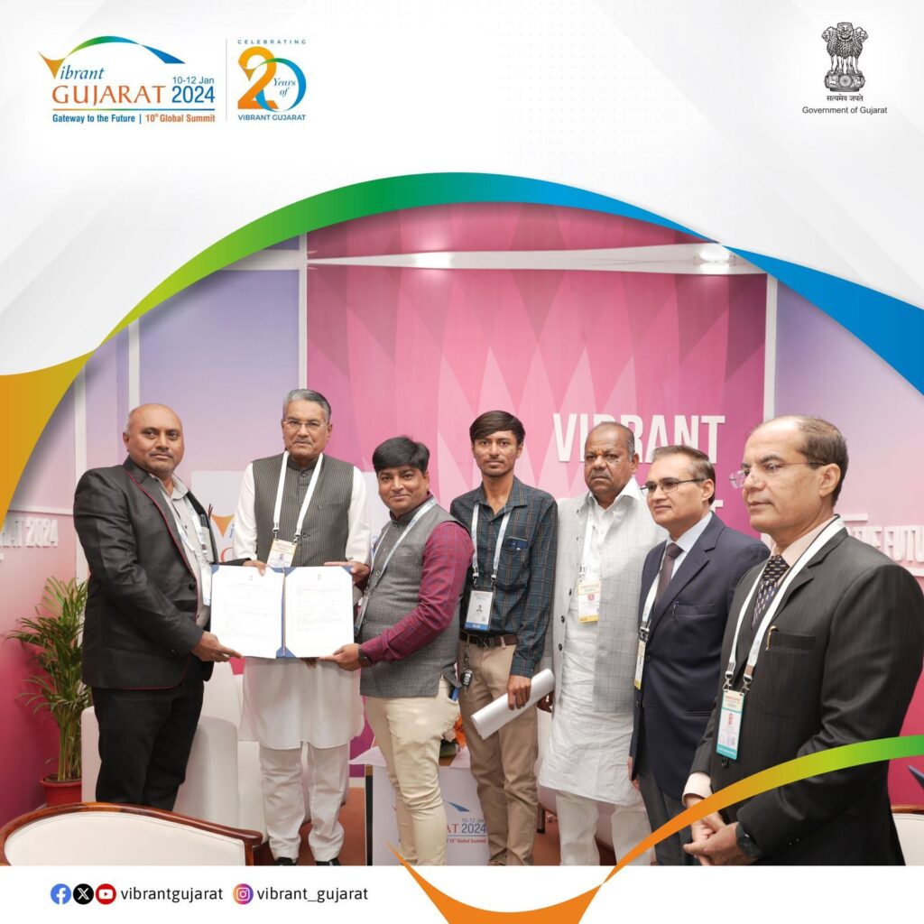 વાયબ્રન્ટ ગુજરાત ગ્લોબલ સમિટ ૨૦૨૪ અંતર્ગત કંપનીના પ્રોજેક્ટ ખેડુત સહકાર કેન્દ્ર રાજયભરમાં ખોલવા રૂપિયા ૫૦૦ કરોડના એગ્રો એન્ડ ફૂડ પ્રોસેસિંગ સેકટરમાં M O U કરતી જૂનાગઢની કંપની ભીતર એન્ટરપ્રાઈઝ પ્રા.લી.