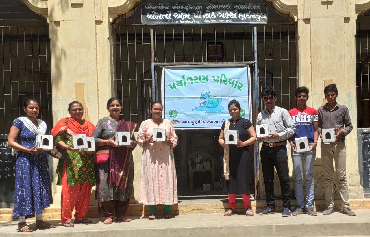 મોરબીની એમ. પી. શેઠ ગર્લ્સ હાઈસ્કૂલ ખાતે પર્યાવરણ પરિવાર દ્વારા ચકલીઘરનું વિતરણ કરવામાં આવ્યું હતું. લોકોમાં પક્ષીપ્રેમ જાગે અને પક્ષીઓને પણ આશ્રય મળે તે માટે હાઈસ્કૂલમાં પક્ષીઓના માળા લગાવવામાં આવ્યા હતા. આ સમયે એમ. પી. શેઠ. ગર્લ્સ હાઈસ્કૂલના પ્રિન્સિપાલ ઉષાબેન એમ. જાદવ, ગીતાબેન ગાવિત, વર્ષાબેન સુખાનંદી, શાળાના શિક્ષકગણ તેમજ પર્યાવરણ પરિવારના સભ્યો પરમાર ધર્મિષ્ઠા, પરમાર રૂપેશ (કવિ જલરૂપ), નકુમ મનોજ, નકુમ હર્ષદ, નકુમ હાર્દિક સહિતના ઉપસ્થિત રહ્યા હતા.