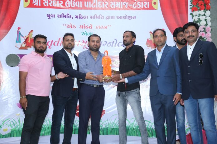 ટંકારા : સરદાર લેઉવા પાટીદાર સમાજ ટંકારા દ્વારા ગત તા. 03 ને મંગળવાર (અખાત્રીજ) ના રોજ તૃતીય સમૂહલગ્નનું આયોજન કરવામાં આવ્યું હતું જેમાં પાટીદાર સમાજની ત્રણ પાંખનું સન્માન કરવામાં આવ્યું હતું.